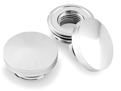 • Made from billet aluminum with chrome finish, these gas caps have a unique ratchet action to prevent over tightening and includes paint protector and locking tool