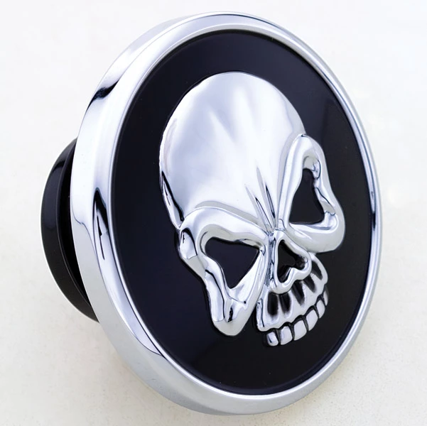 • The chrome skull on a black background creates an eerie 3-D effect
