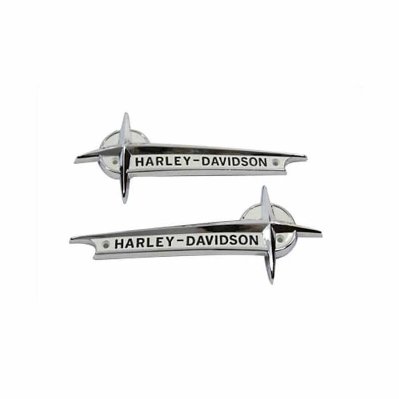 OE set of white emblems with black lettering for 1961-62 gas tanks.
